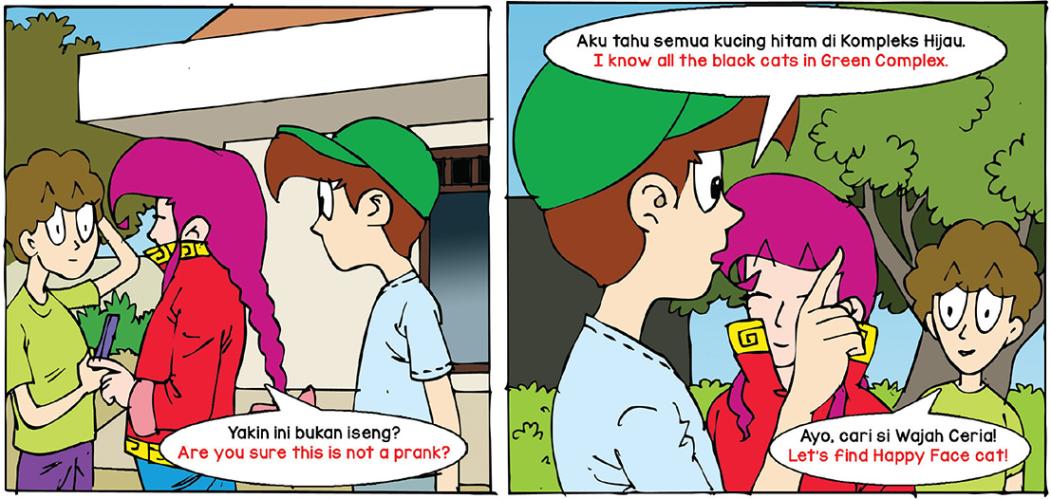 Panji, Ping-Ping dan Pinot mencari seekor kucing yang punya keunikan